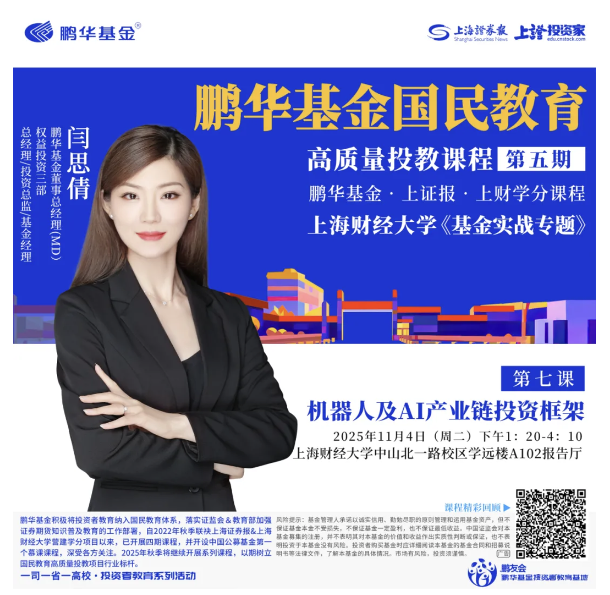 2025年9月9日,上海证券报携手鹏华基金,以上海财经大学为支点重磅打造的高质量国民教育课程标杆项目——高质量国民教育投教第五期课程《基金实战专题》正式开课。主办方特邀鹏华基金8位顶尖基本面投资专家担任主讲老师,聚焦“创新科技、创新消费、创新国粹”主题,覆盖科技、消费、医药、半导体、化工、AI等多个关乎国家产业发展命脉的赛道,贴合全球产业趋势与中国经济转型方向。